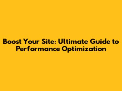 Boost Your Site: Ultimate Guide To Performance Optimization