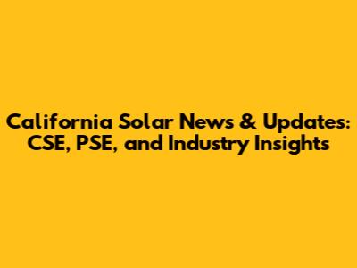California Solar News & Updates: CSE, PSE, And Industry Insights