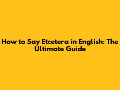 How To Say 'Etcetera' In English: The Ultimate Guide