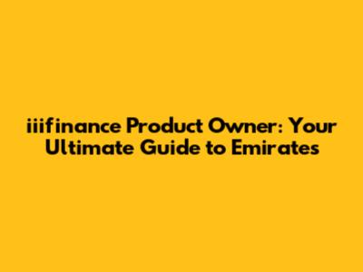 Iiifinance Product Owner: Your Guide To Emirates