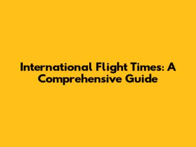 International Flight Times: A Comprehensive Guide