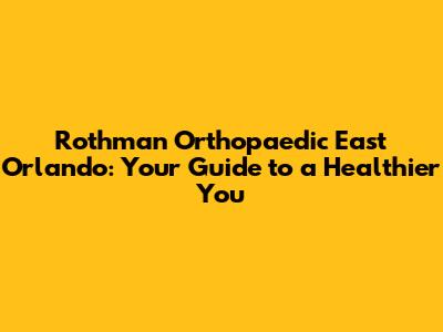 Rothman Orthopaedic East Orlando: Your Guide