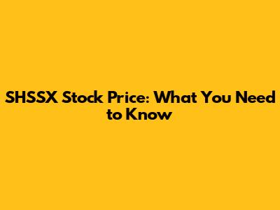 SHSSX Stock Price: What You Need To Know