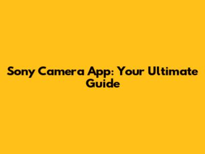 Sony Camera App: Your Ultimate Guide